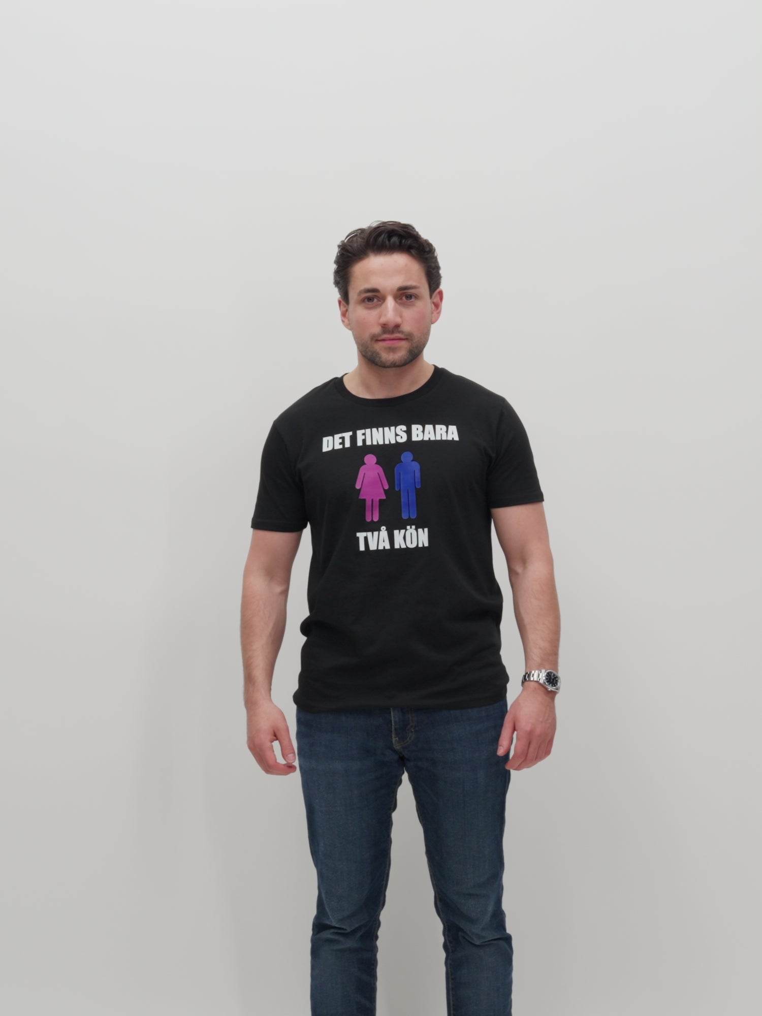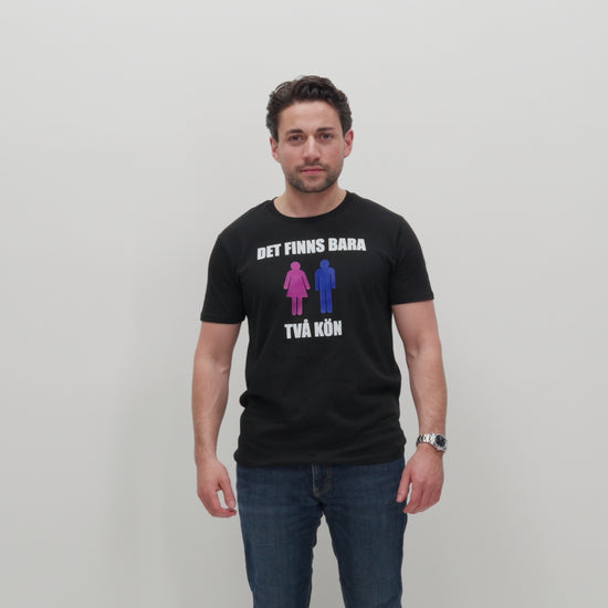 Svart t-shirt med texten "DET FINNS BARA TVÅ KÖN" och två tydliga symboler. Mjuk, skön och högkvalitativ 100% bomull.