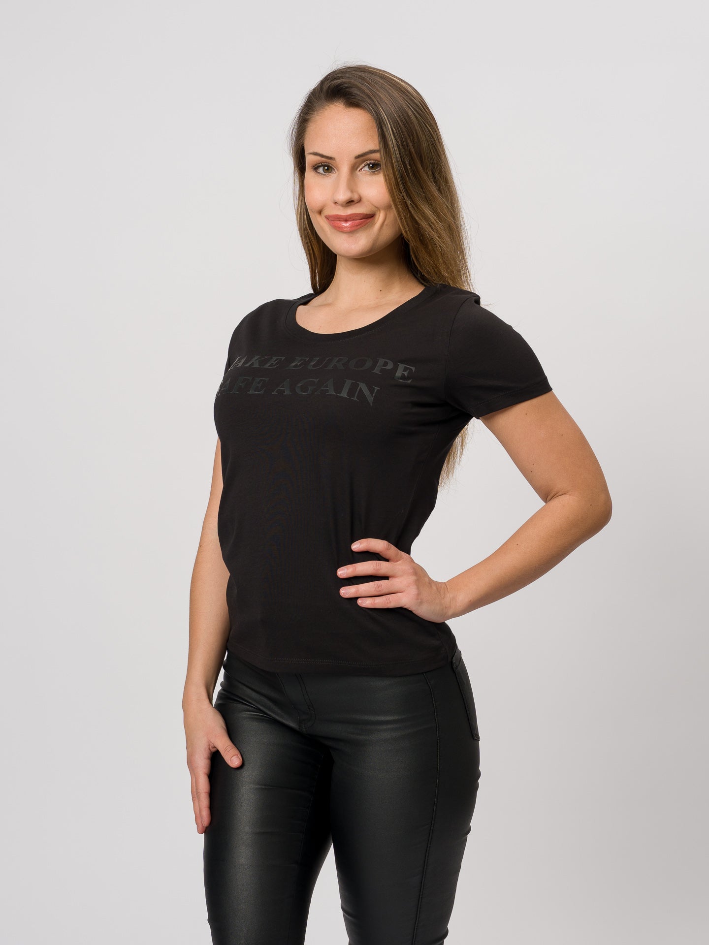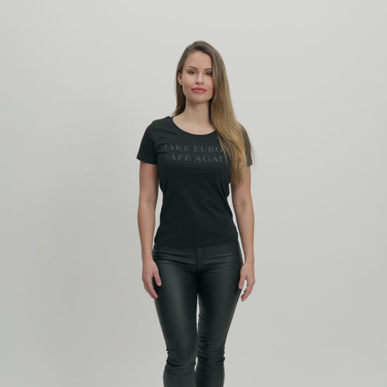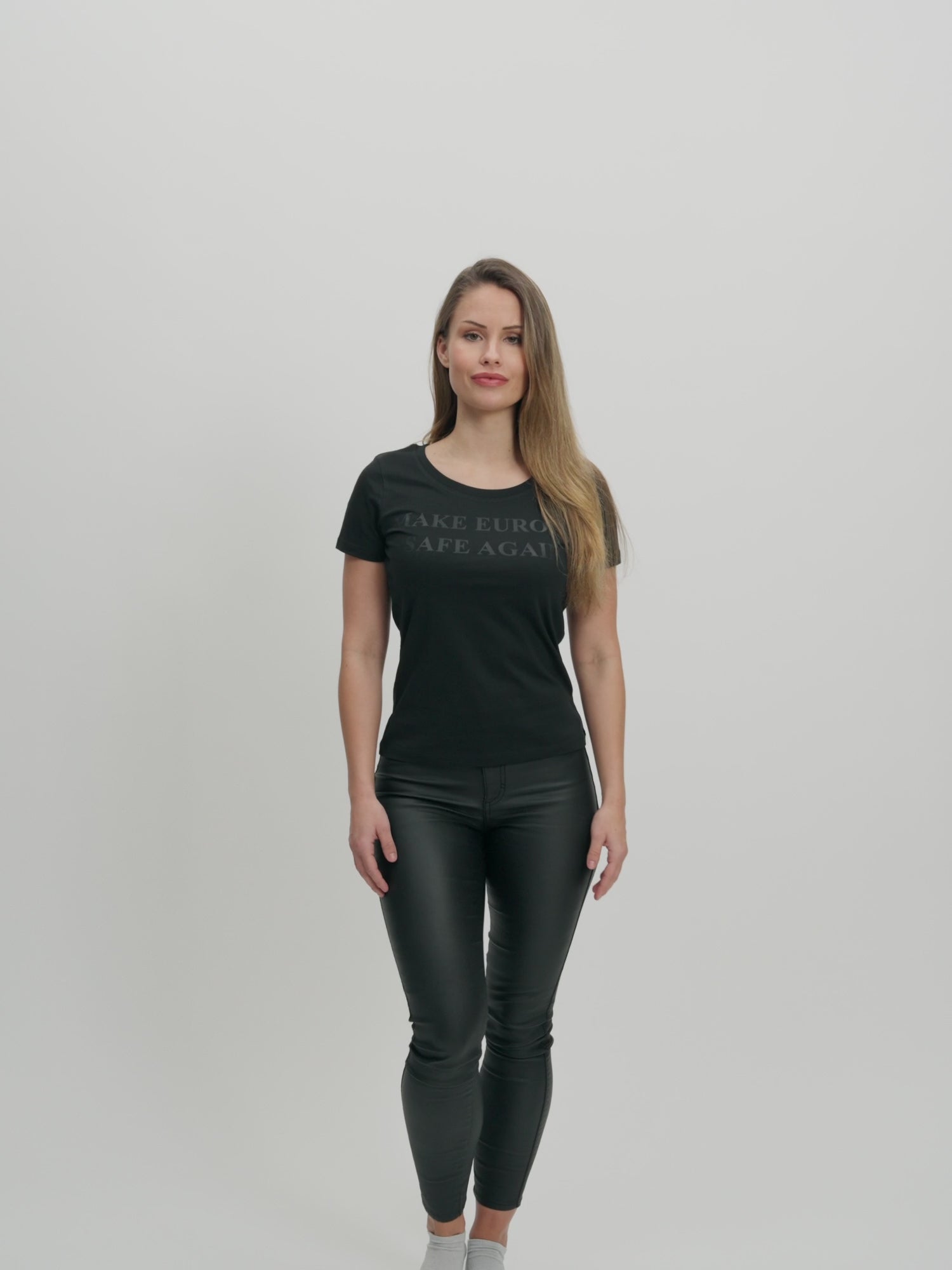 En oerhört stilren, snygg och tydlig t-shirt. Make Europe Safe Again, svart på svart. Mjuk, skön och högkvalitativ 100% bomull. Nu i dammodell!
